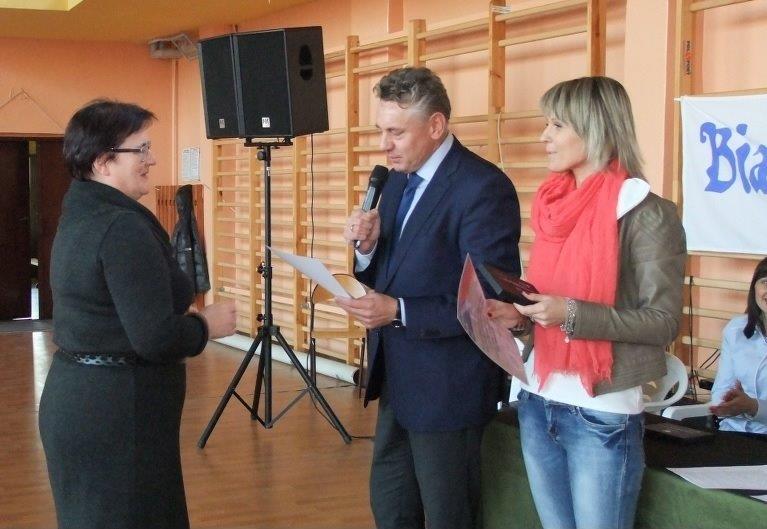 Nagrody główne przekazane przez Burmistrza wręczył Zastępca Mieczysław Danielewicz. Serdeczne podziękowania składamy szanownemu Jury za pracę włożoną w sprawdzanie prac konkursowych, Dyrektor Annie Gutkiewicz oraz nauczycielom Publicznego Gimnazjum im. J. Kochanowskiego za okazaną pomoc w organizacji konkursu i udostępnienie sali gimnastycznej.