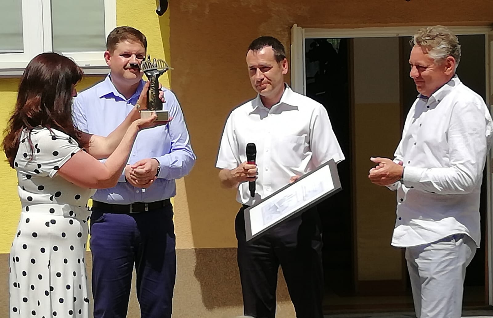 Z okazji tej wspaniałej rocznicy Burmistrz Adam Bolek razem z Przewodniczącym Rady Miasta i Gminy Marcinem Osowskim przekazali na ręce Pani Dyrektor Anny Siurnik wyróżnienie ”Białobrzeskie Mosty” jako dowód wdzięczności za szczególne zaangażowanie w rozwój Gminy Białobrzegi.